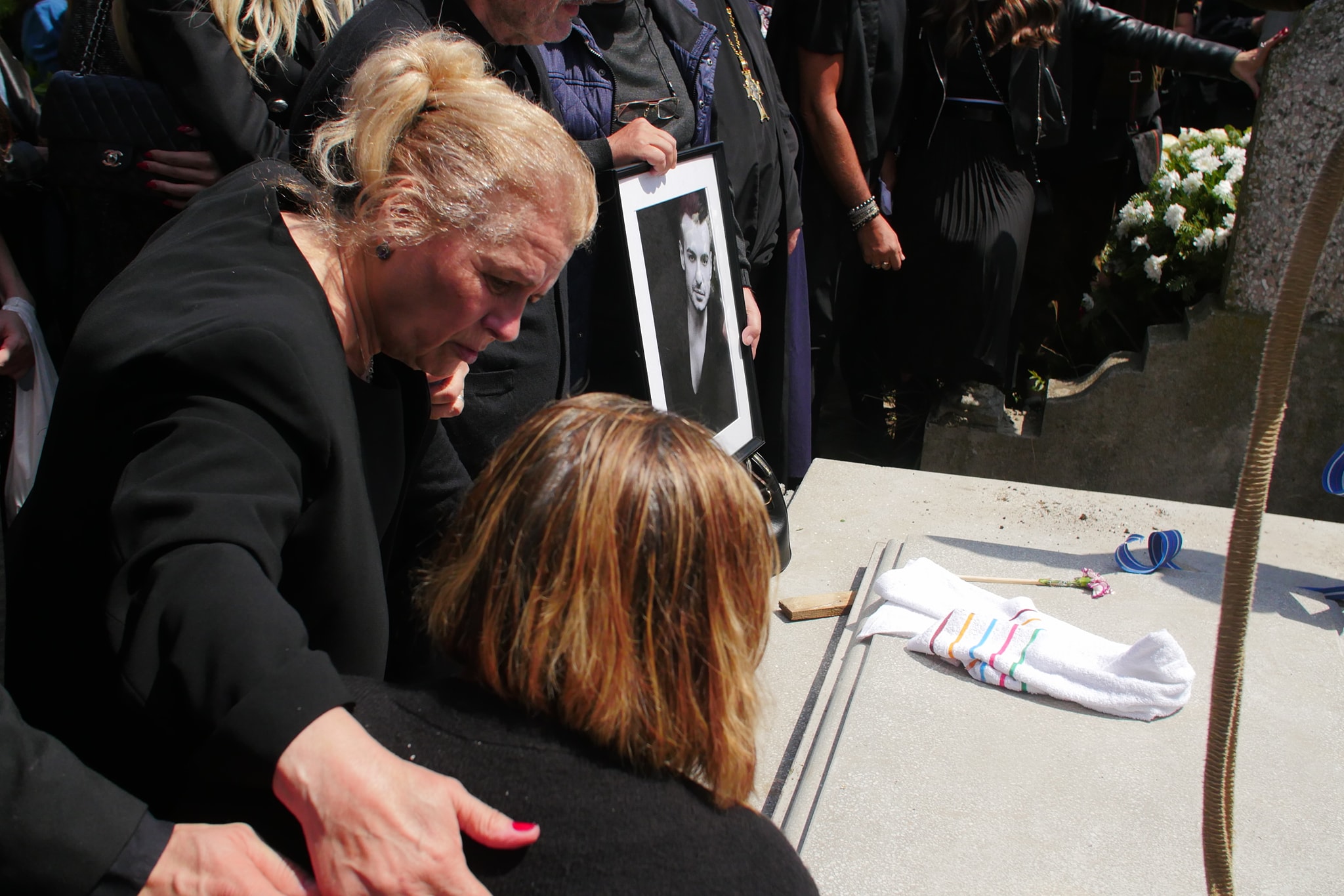 Mama lui Răzvan Ciobanu, îngenuncheată de durere la mormântul designerului. Elena s-a prăbușit după ce sicriul a fost băgat în groapă