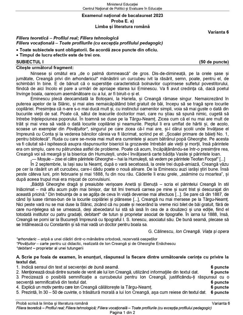 Subiectele și baremele de corectare au fost publicate de Ministerul Educației / foto: Edu.ro