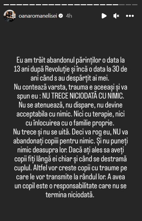 Mesajul scris de Oana Roman pe internet