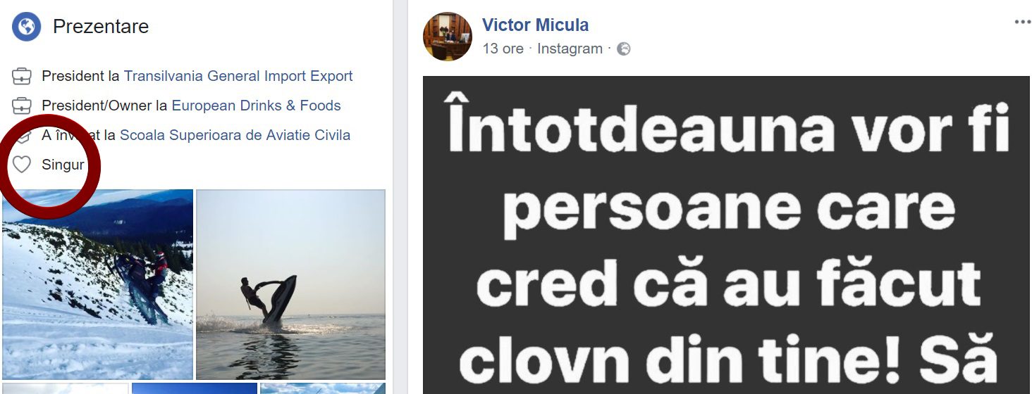 Victoraș și-a schimbat statutul de pe Facebook, în "singur"