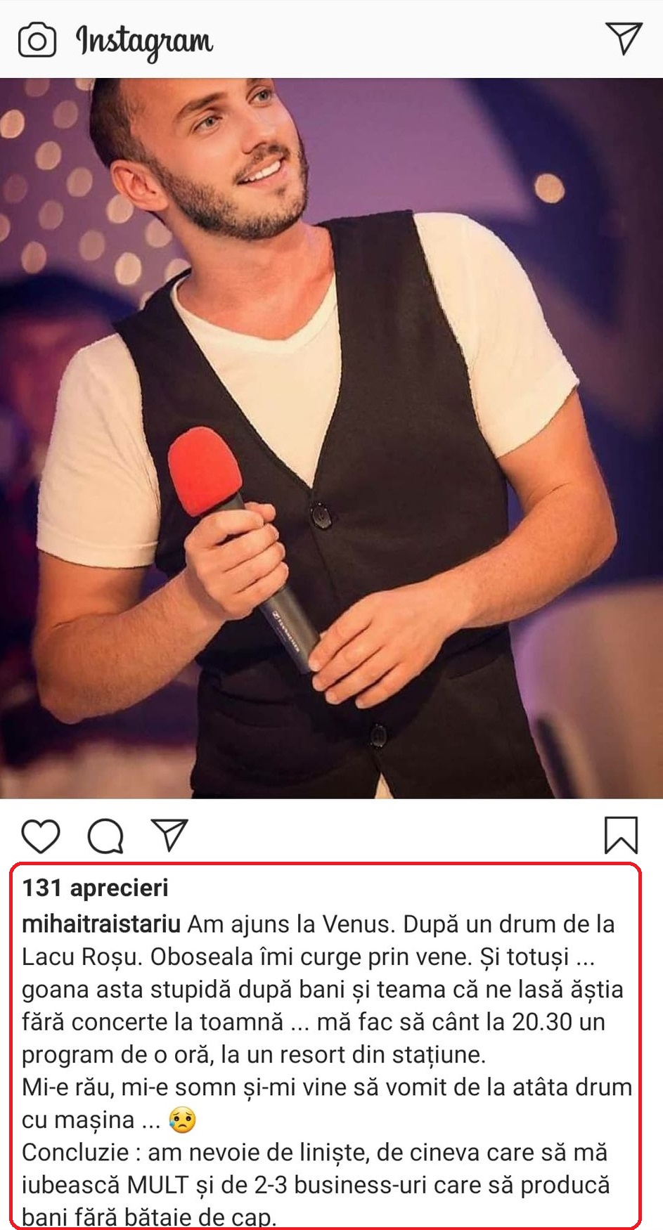Mihai Trăistariu, dezvăluiri șocante înainte să urce aseară pe scenă: “Mi-e rău, oboseala îmi curge prin vene. Goana asta stupidă după bani și teama că…”