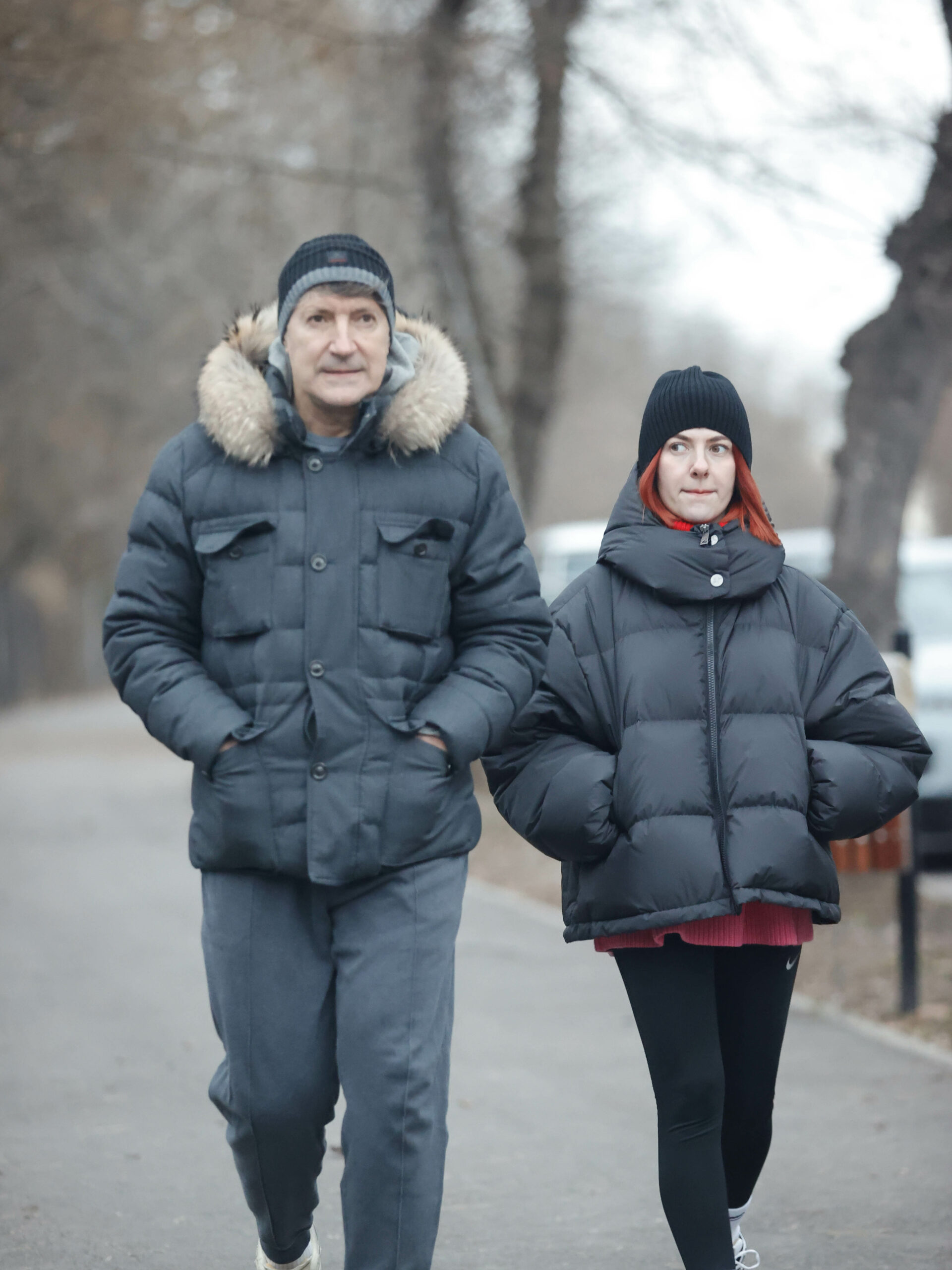 Echipați corespunzător pentru temperaturile scăzute, cei doi s-au plimbat în parc