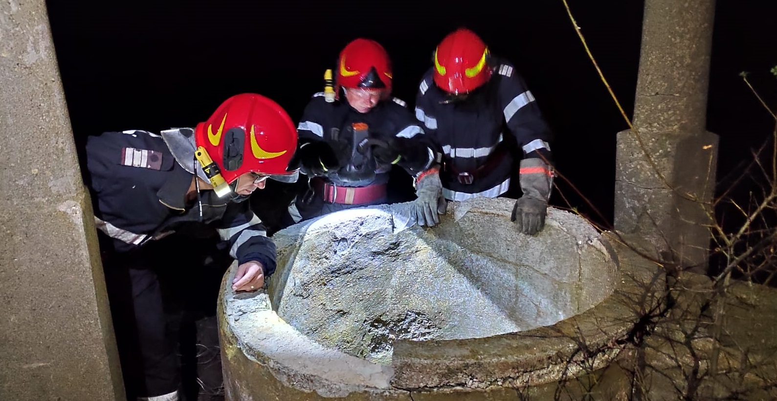 Misiune inedită a pompierilor, la Caraula, în Dolj. Au scos o cățelușă cu patru pui dintr-o fântână adâncă de 30 de metri