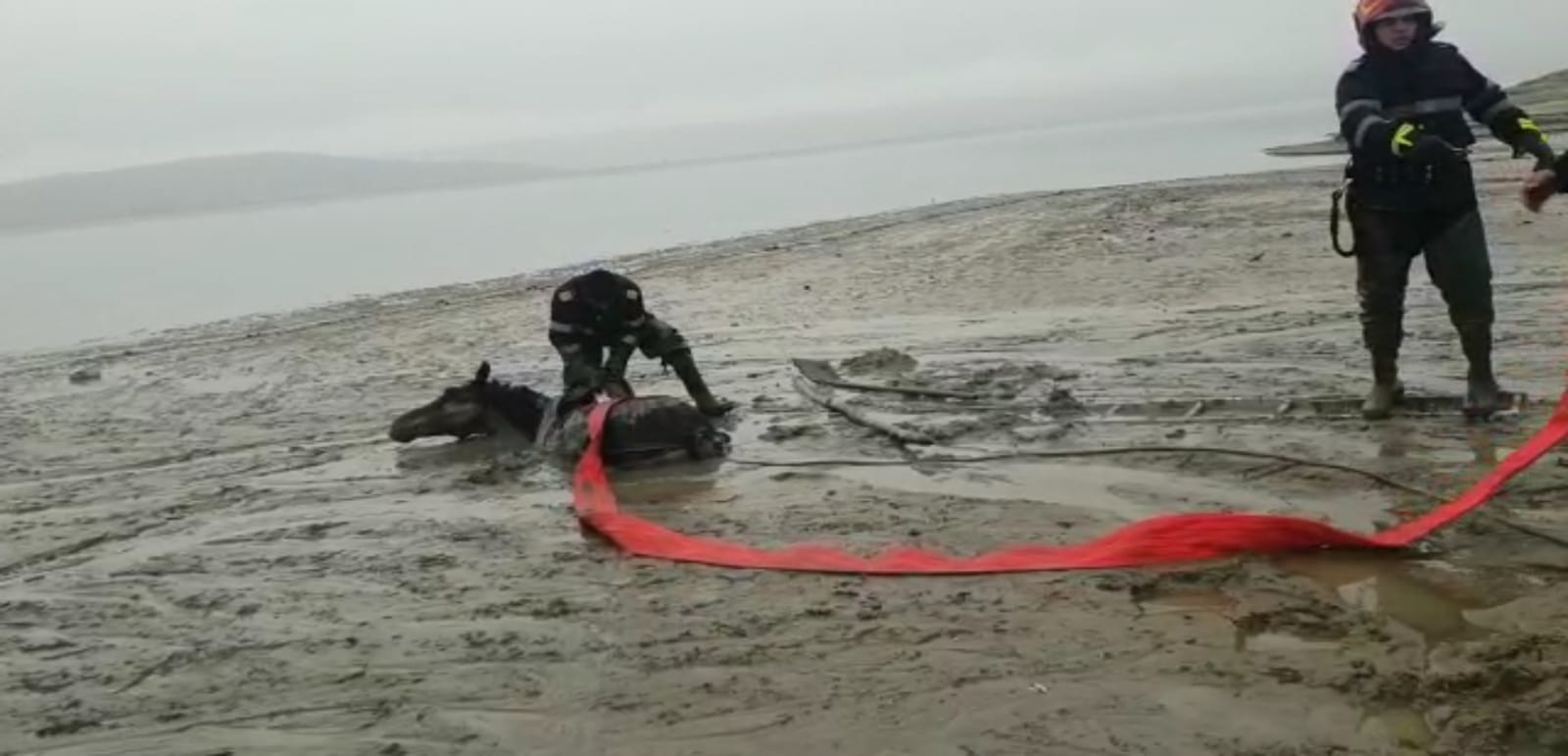 Misiune dificilă și inedită pentru pompierii din Argeș. Au salvat un cal „îngropat” în mâl – VIDEO