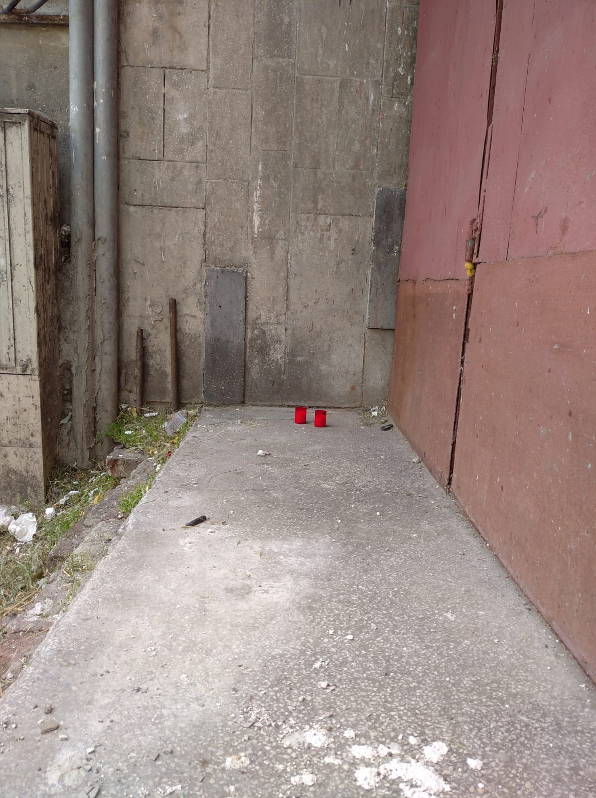 Lumânări lăsate de vecini la locul unde a fost găsit cadavrul