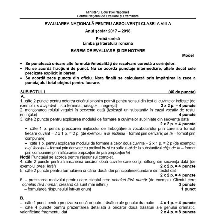 Modele de subiecte la proba scrisă de la limba și literatura română pentru Evaluarea Națională 2019