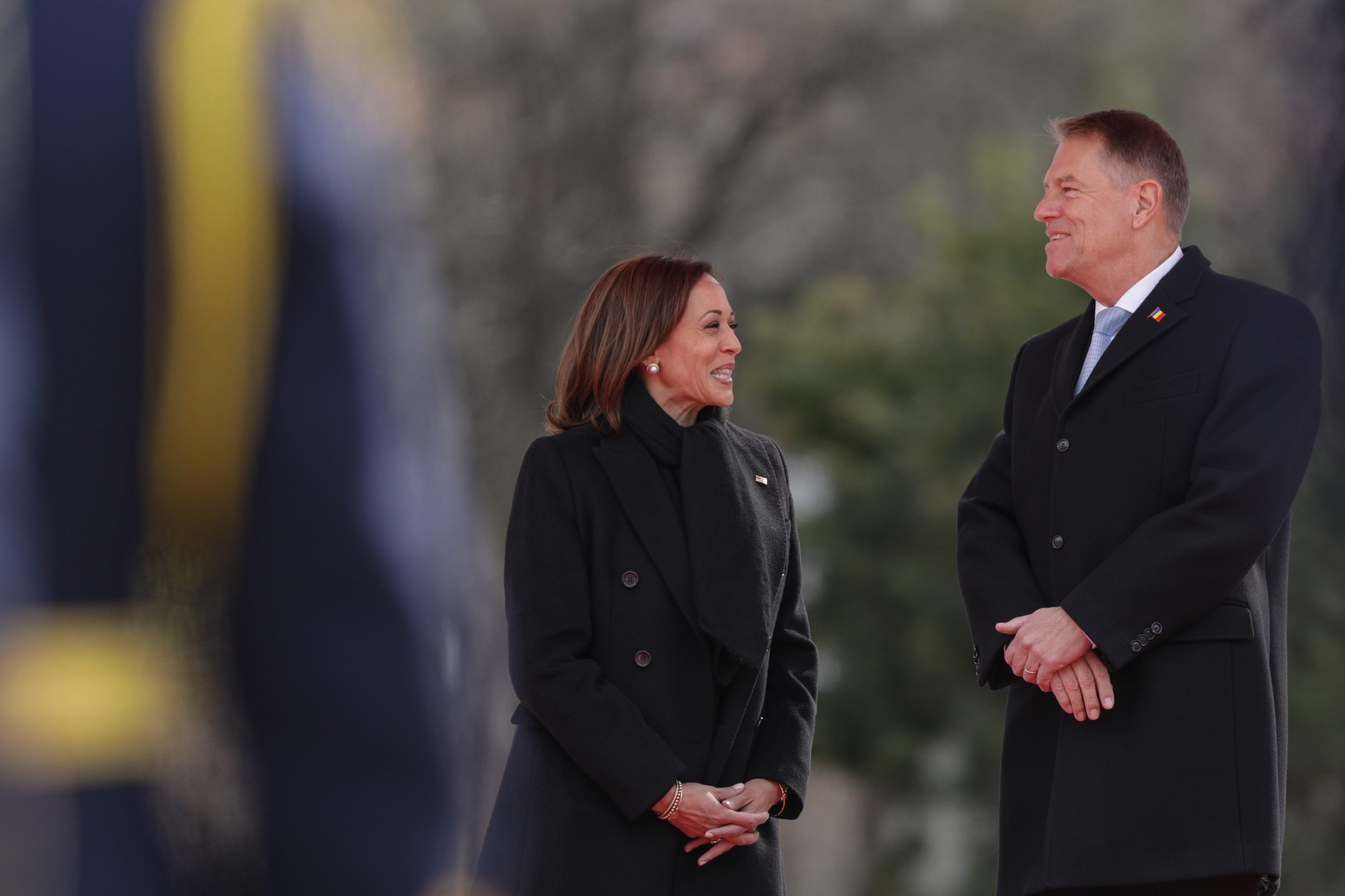 Moment amuzant la întâlnirea Kamalei Harris cu Klaus Iohannis. S-a pus în genunchi şi i-a uimit pe toţi