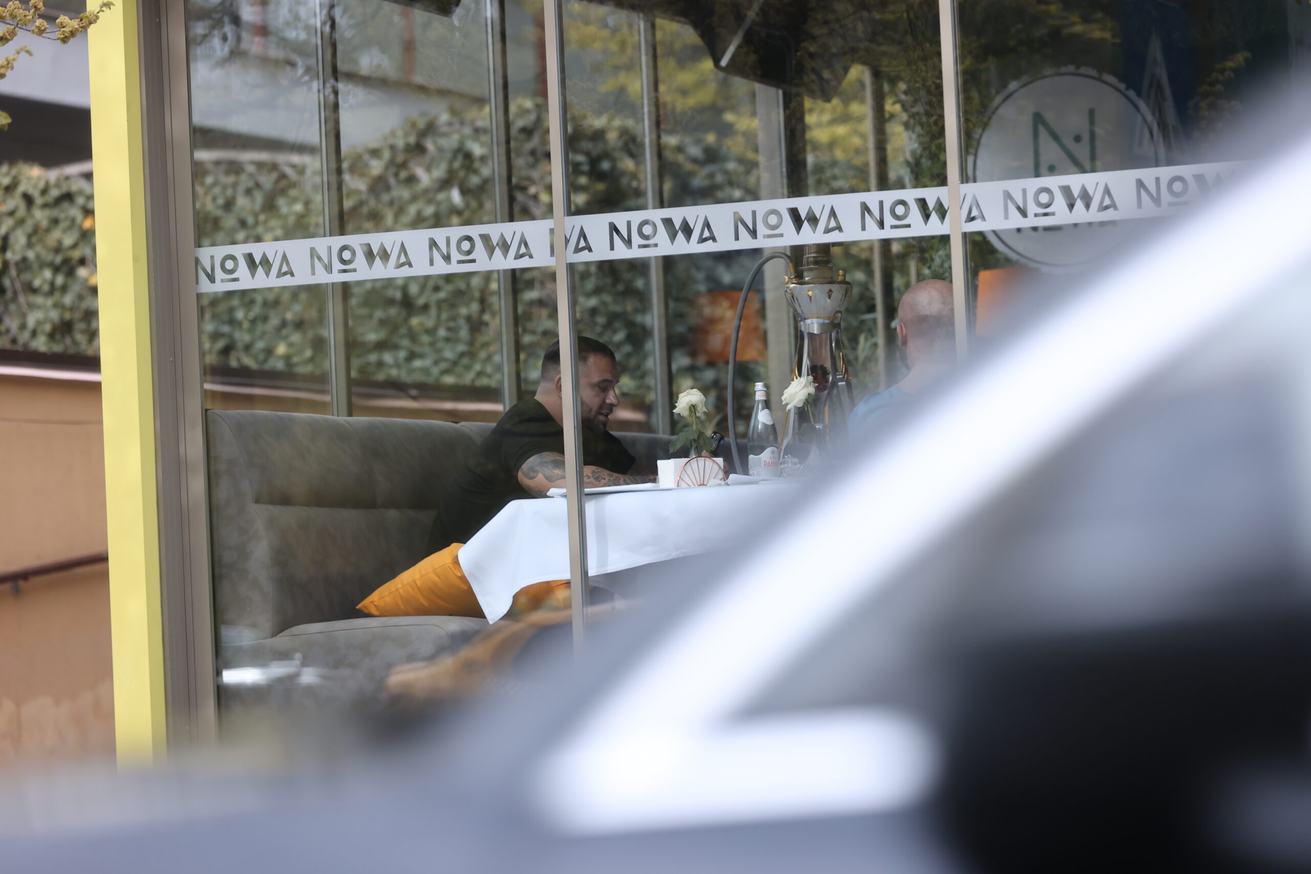 Alex Bodi trage din narghilea, la terasă