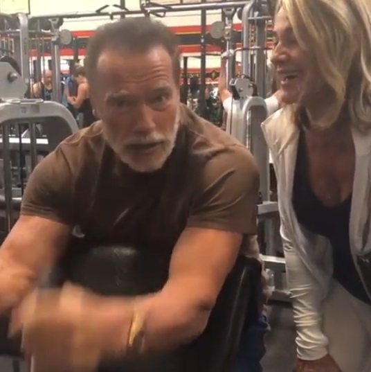 Nadia Comăneci a sărbătorit 43 de ani de la primul 10 al gimnasticii împreună cu Arnold Schwarzenegger. Celebra româncă i-a pipăit mușchii actorului