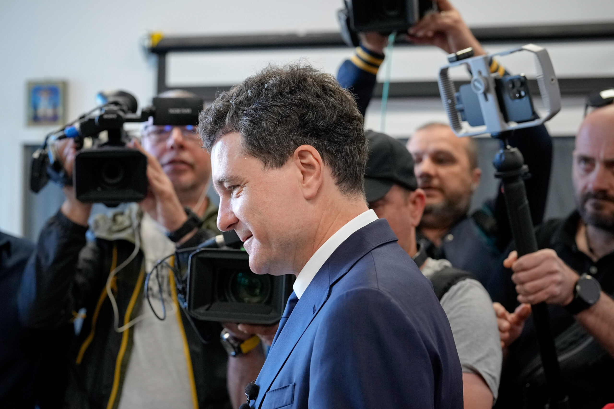 Candidatul independent la alegerile prezidentiale, Nicusor Dan, paraseste sectia de votare dupa ce si-a exercitat dreptul la vot, in primul tur de scrutin al alegerilor prezidentiale, in Bucuresti, duminica, 4 mai 2025. ANDREEA ALEXANDRU / MEDIAFAX FOTO