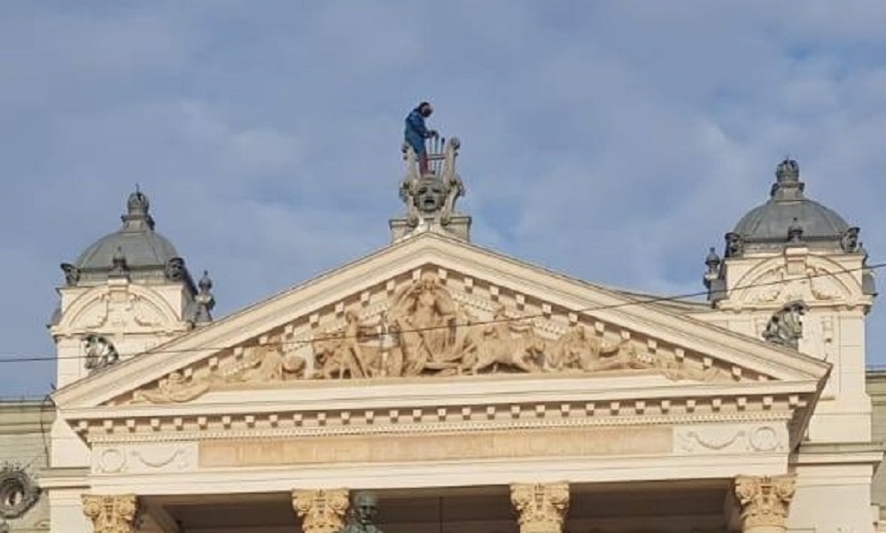 Nu e film! Un bărbat din Iași s-a îmbrăcat în Superman și amenință că își va lua zborul de pe clădirea teatrului
