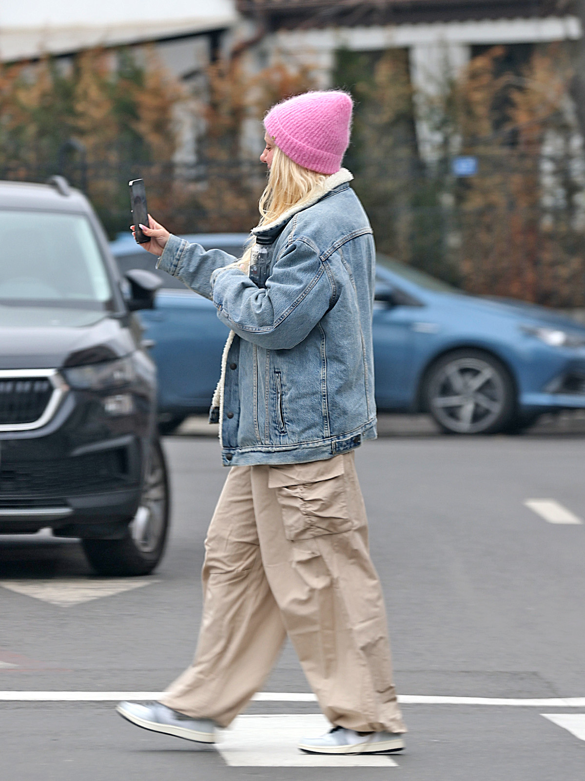 Blondina s-a filmat direct pe trecerea de pietoni, înainte de intrarea în mașină (Foto: CANCAN.RO)