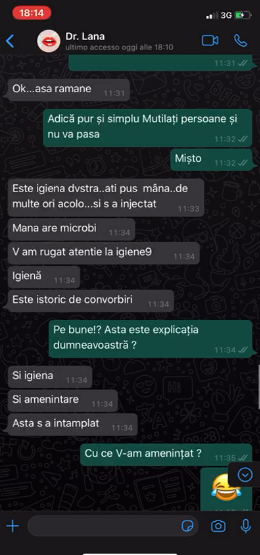 Discuția purtată de Simona cu un reprezentant al clinicii unde a suferit intervenția