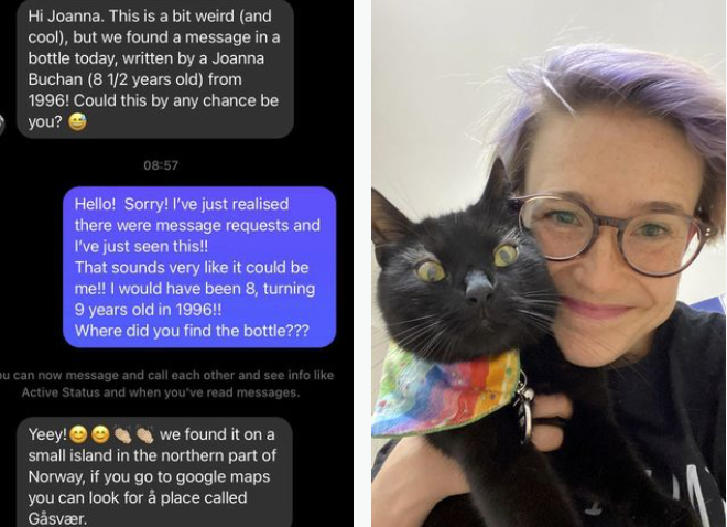 O femeie a scris un mesaj pecare l-a băgat într-o sticlă aruncată ulterior în mare, când avea 8 ani. 25 de ani mai târziu ea a primit răspunsul scrisorii