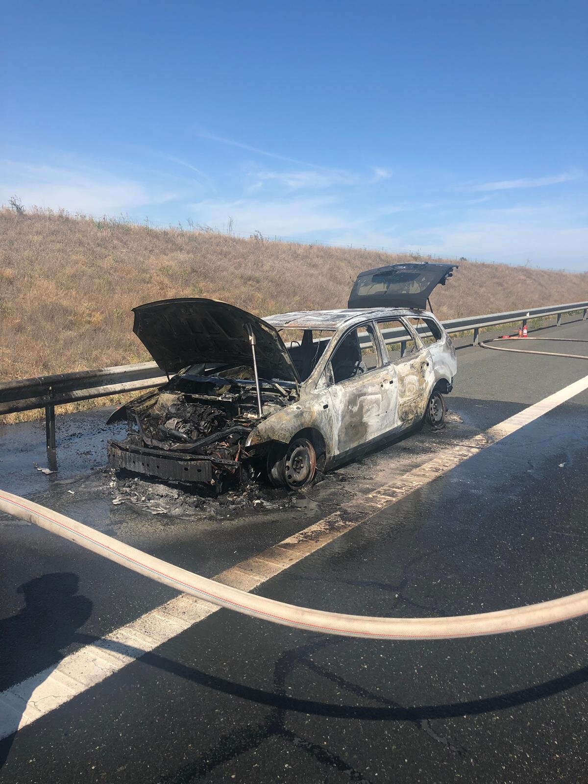 O mașină a luat foc pe Autostrada Soarelui. Pompierii au intervenit de urgență