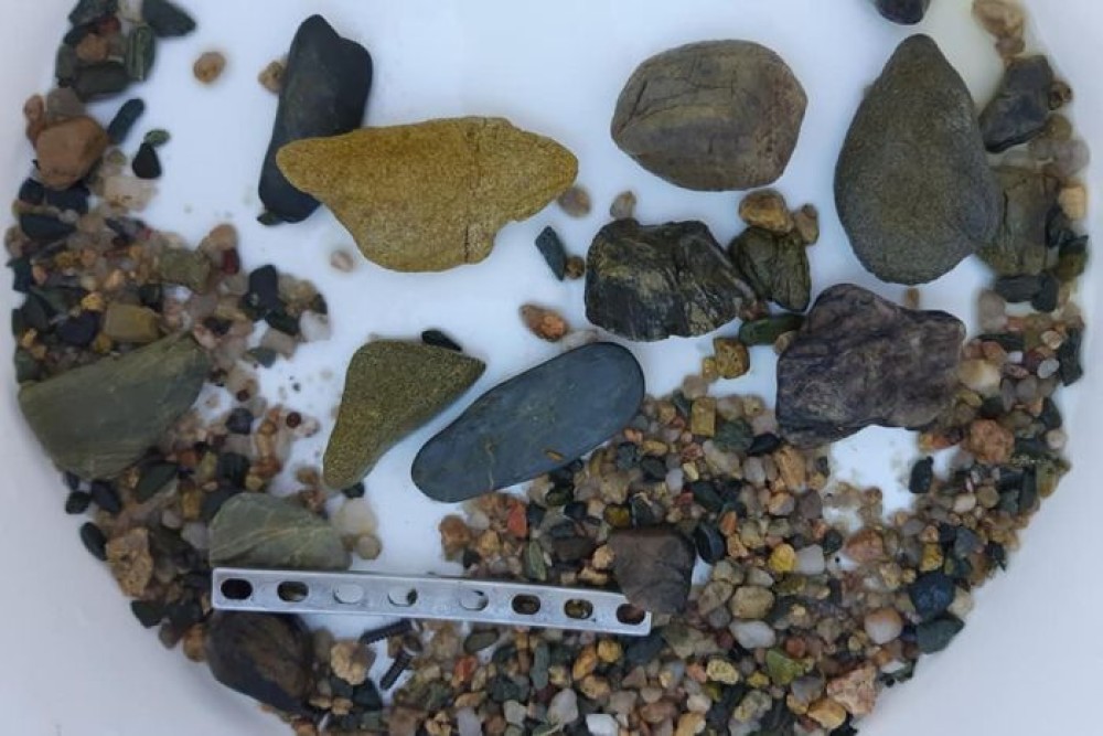 O placă metalică ortopedică, descoperită în stomacul unui crocodil mort