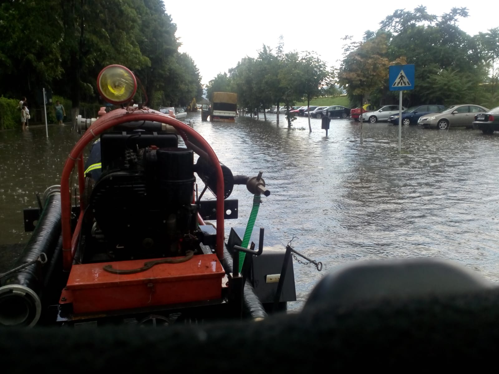 O ploaie torențială a inundat Râmnicu Vâlcea. Trafic paralizat, maşini rămase în apă, arbori căzuți