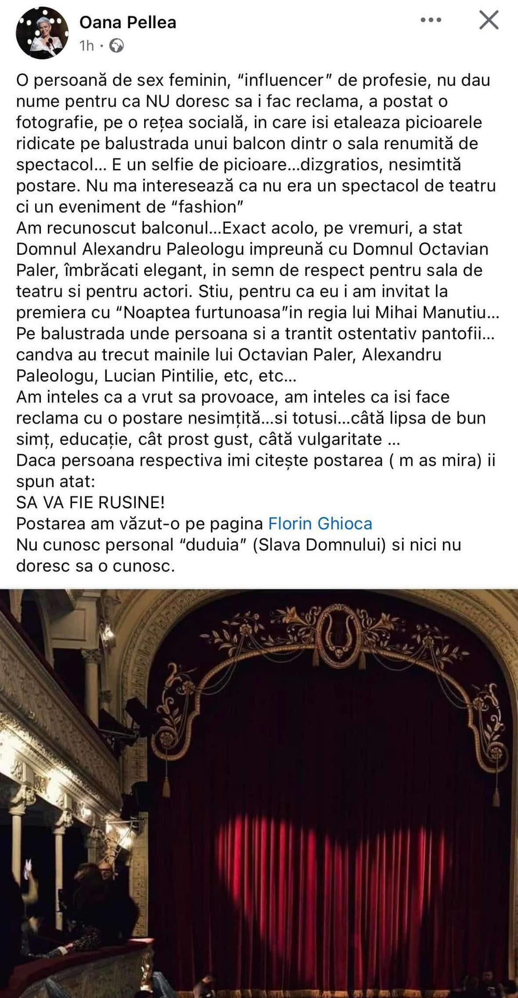 Alina Ceușan, pusă la zid de Oana Pellea. Foto: Facebook / Oana Pellea