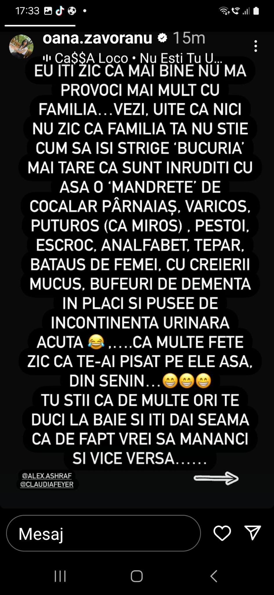 Oana Zăvoranu l-a încins grav pe Alex Bodi! Uluitor ce mesaj i-a trimis: ”Ai avut 2 neuroni, s-au luat la ceartă, au divorțat și…”