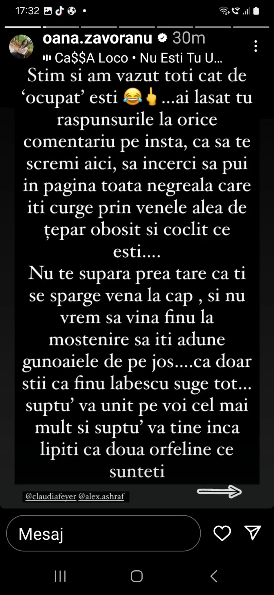 Oana Zăvoranu l-a încins grav pe Alex Bodi! Uluitor ce mesaj i-a trimis: ”Ai avut 2 neuroni, s-au luat la ceartă, au divorțat și…”