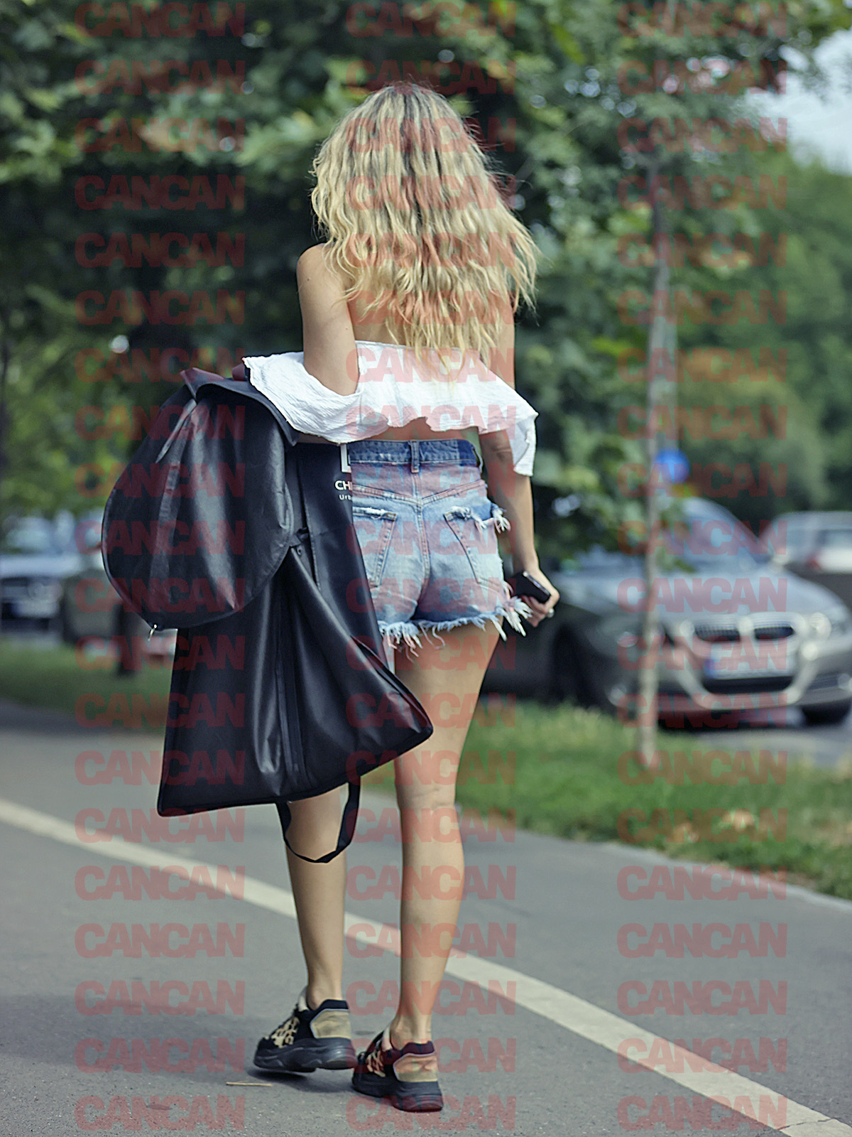 Cu blugi scurți și un top diafan, Otniela a părăsit mall-ul cu o ciorbică la pachet.