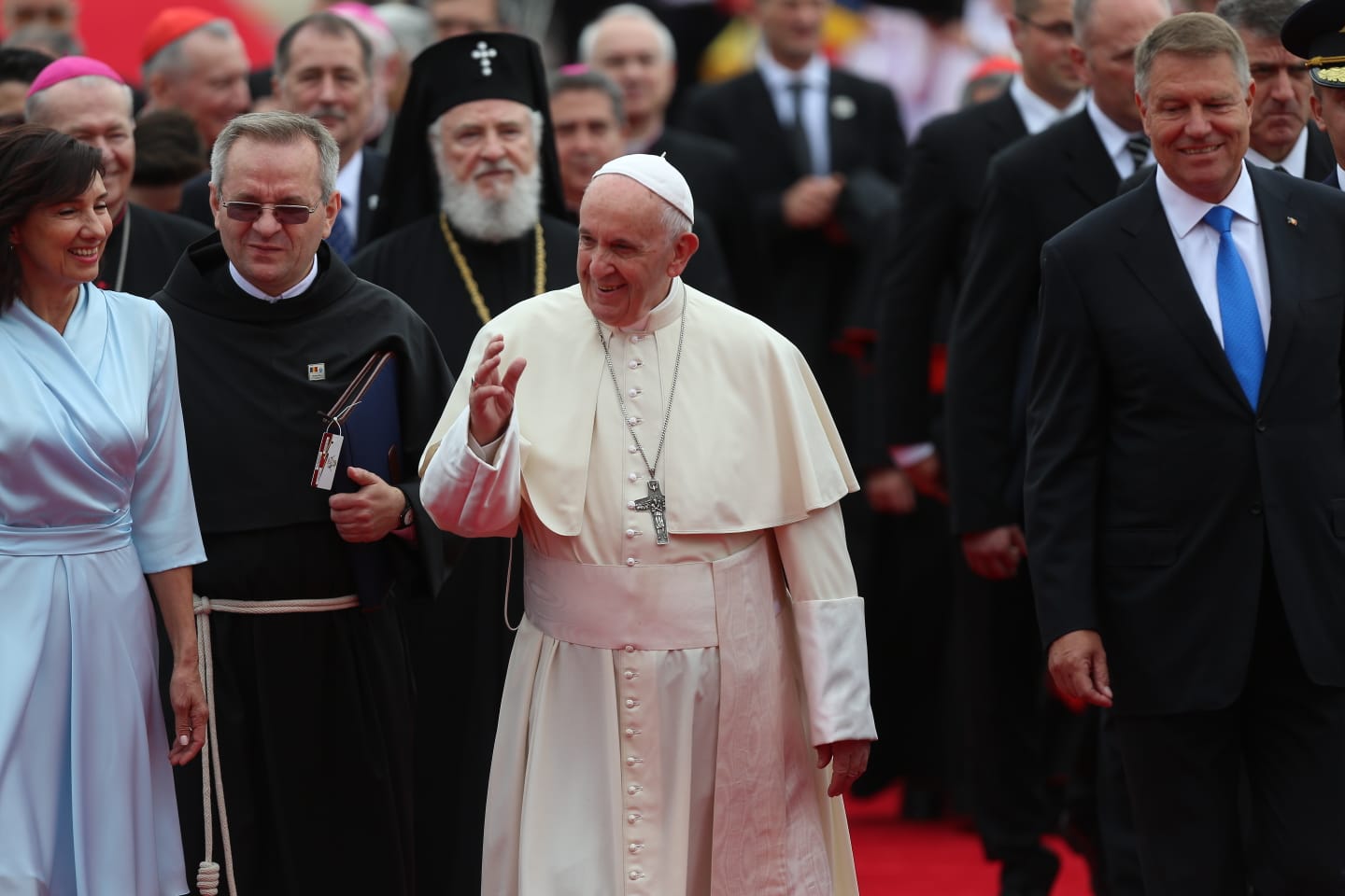 Papa Francisc, întâmpinat la Palatul Culturii din Iași de patru copii orfani
