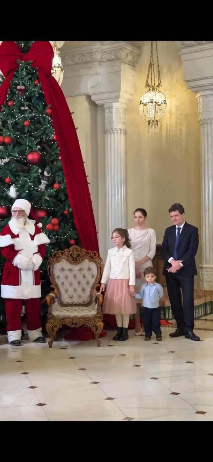 Party de Crăciun la Palatul Cotroceni: Nicușor Dan și Mirabela Grădinaru au primit colindători și cadouri, iar președintele s-a pozat imediat cu ele