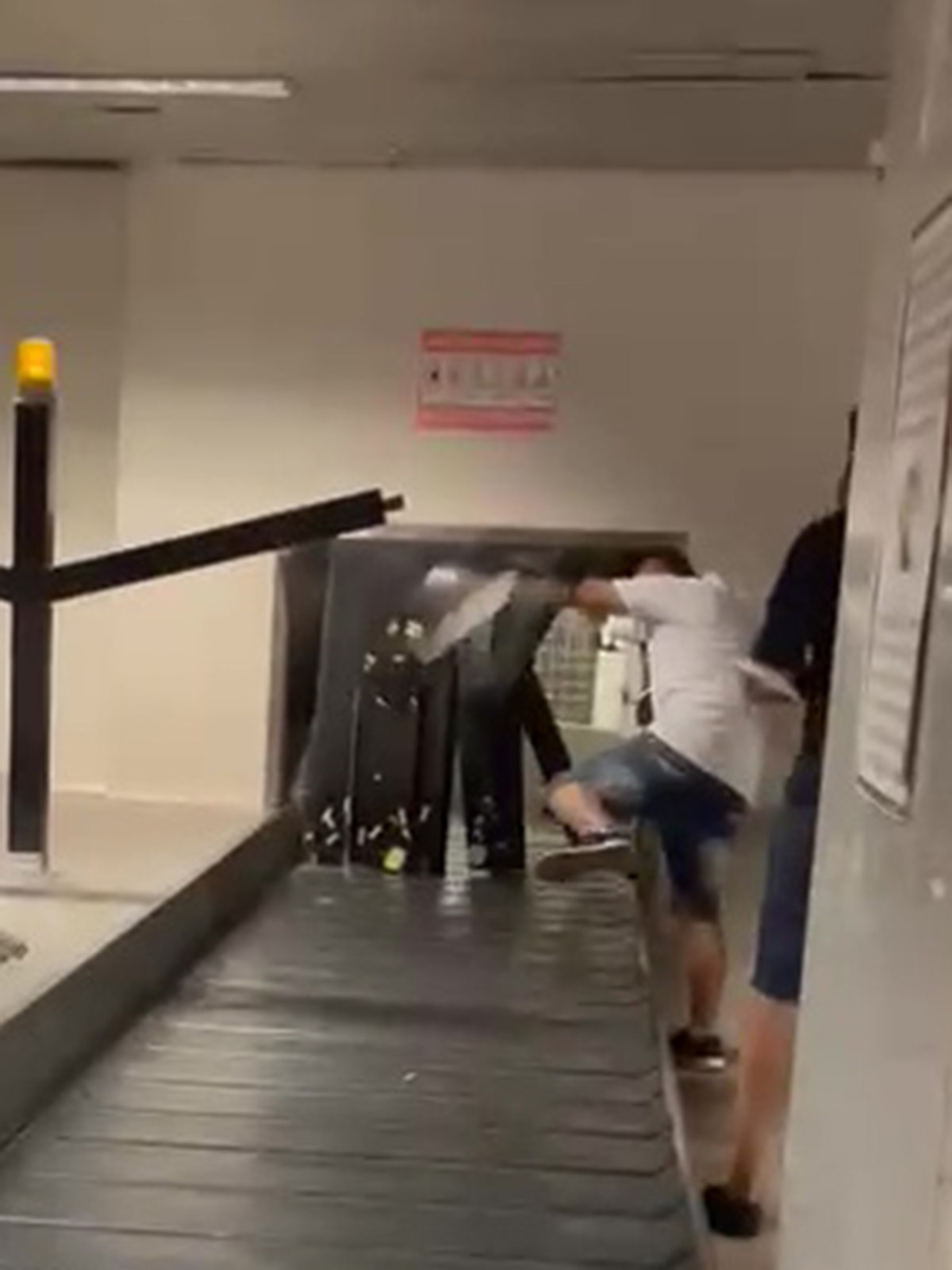 Scene de "Cascadorii râsului" pe una dintre benzile de bagaje de la Aeroportul Henri Coandă (Foto: captură video)