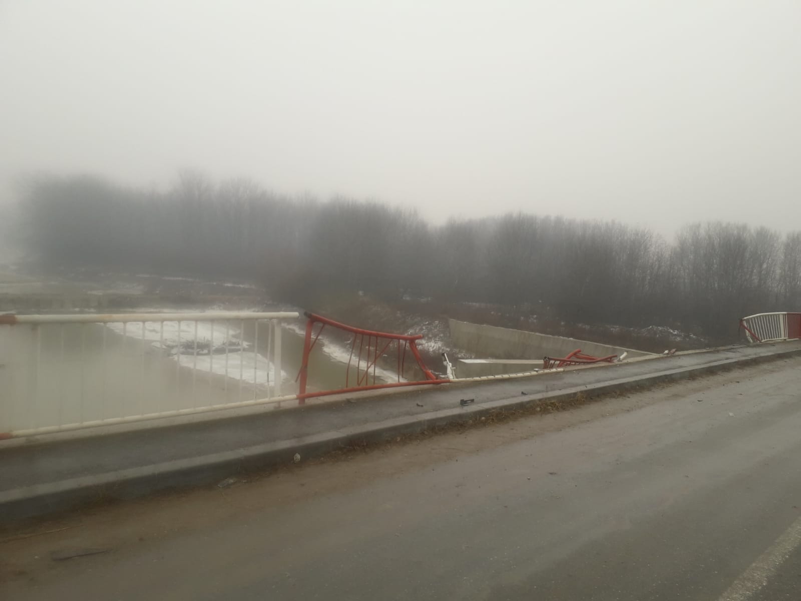 Șoferul nu a mai putut controla camionul din cauza poleiului și a plonjat cu el, de pe pod, în râu
