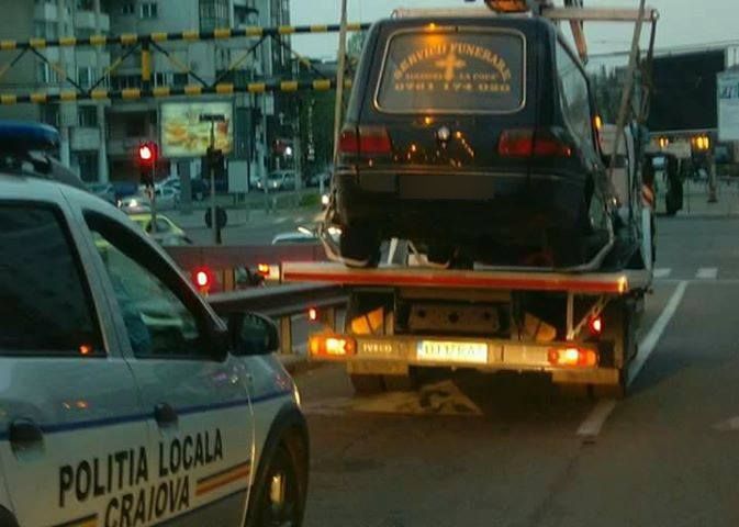 Poliția locală din Craiova, misiune „imposibilă”! Oamenii legii au ridicat un dric parcat ilegal. Șoferul a fost de negăsit