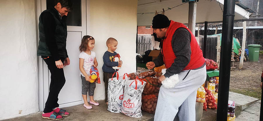 Copiii și părinții sunt bucuroși de întâlnirea cu "Moș Ciprian"