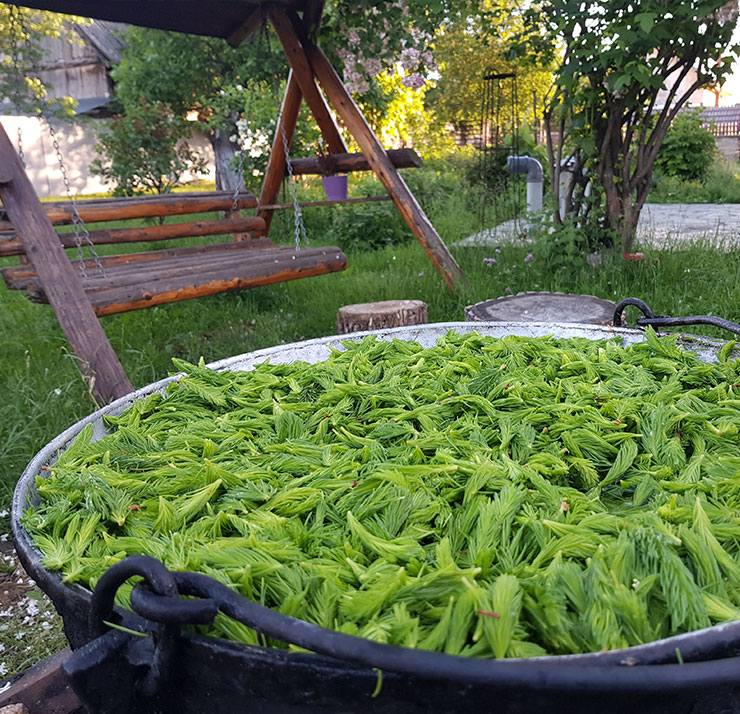 Andrei culege și muguri de brad pentru sirop