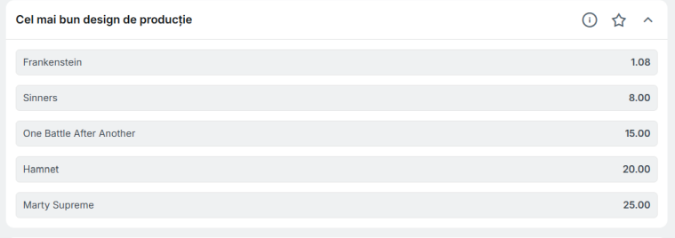 Premiile Oscar 2026: Lista completă a cotelor la casele de pariuri din România
