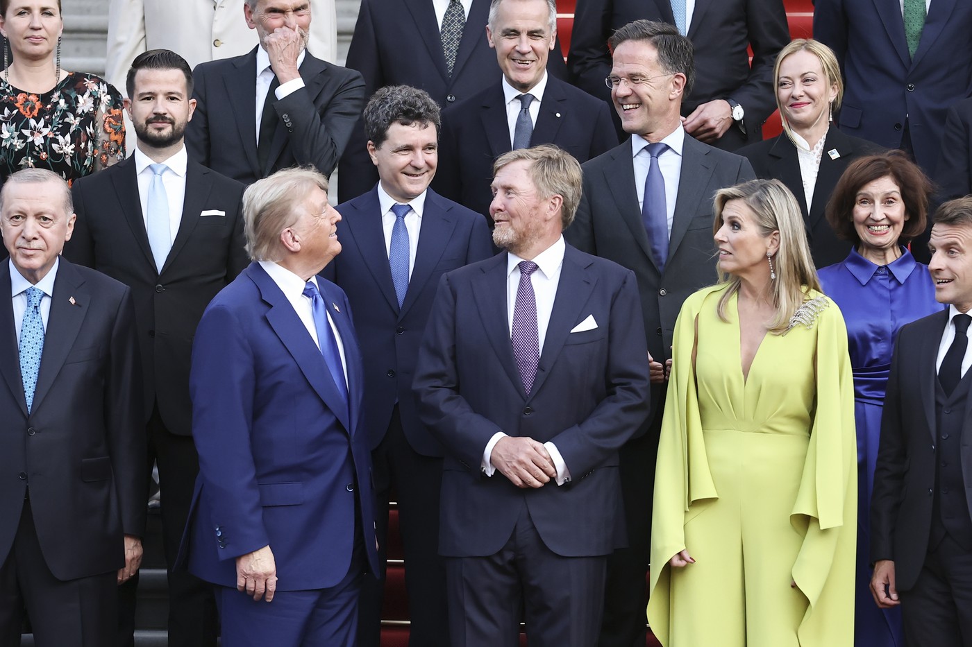 Fotografie de group cu regele Willem-Alexander și regina Maxima cu șefii de stat și de guverne participanți la summitul NATO înainte de dineul de la Paleis Huis Ten Bosch. Foto: Profimedia