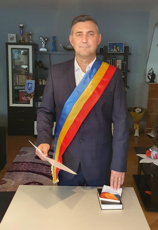Primarul din Potcoava s-a îmbrăcat elegant, și-a pus drapelul pe piept și a anunțat online că a fost testat pozitiv cu COVID-19 | VIDEO