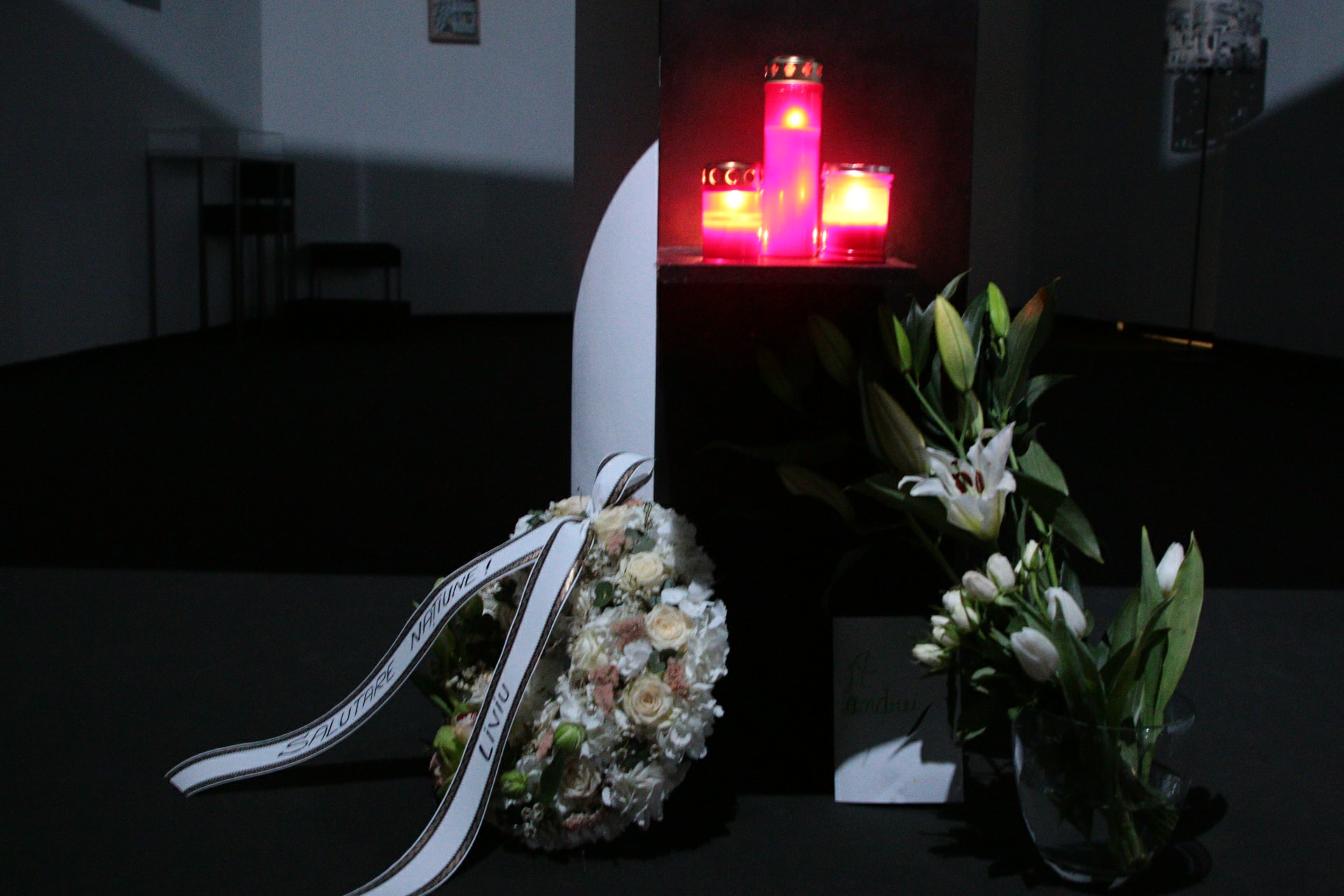 Oamenii au adus coroane și buchete de flori