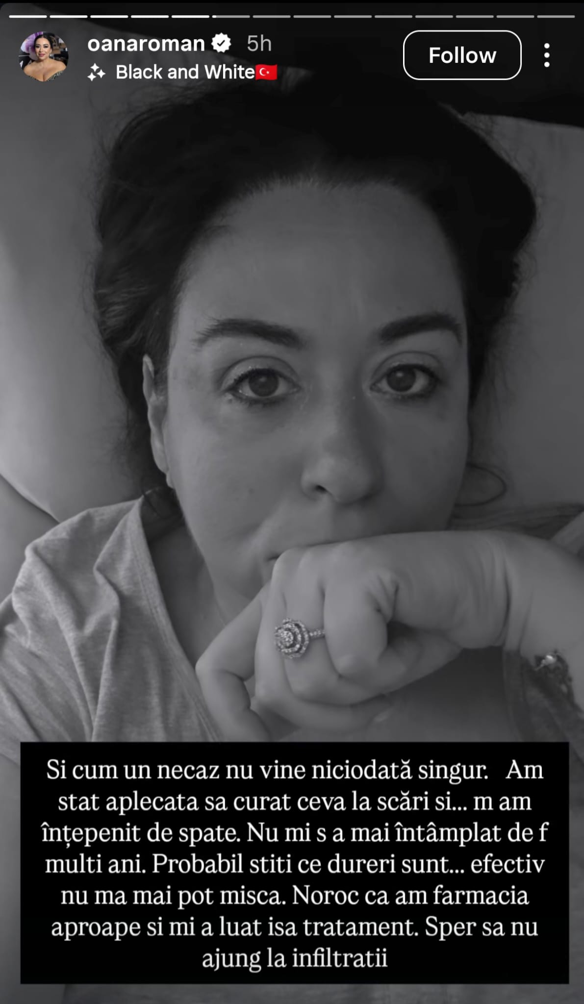 Probleme de sănătate pentru Oana Roman. Vedeta nu se mai poate ridica din pat