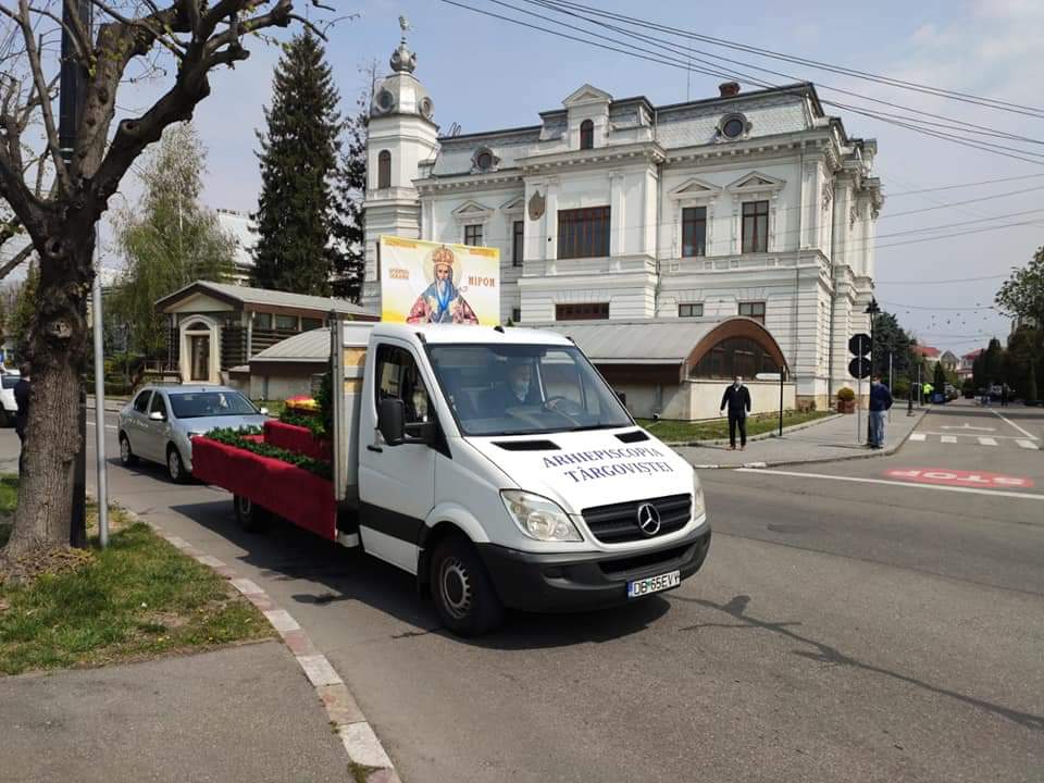 Procesiune la Târgoviște pentru încetarea pandemiei de coronavirus. Medicii au ieșit în fața spitalului și s-au rugat