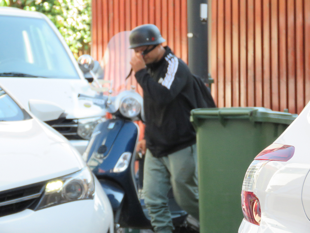 Puya și-a parcat scuterul și a plecat pe jos, pe trotuar, iar în câteva minute a ajuns la destinație