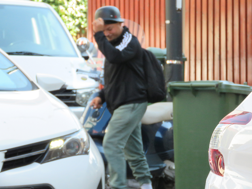 Puya și-a parcat scuterul și a plecat pe jos, pe trotuar, iar în câteva minute a ajuns la destinație