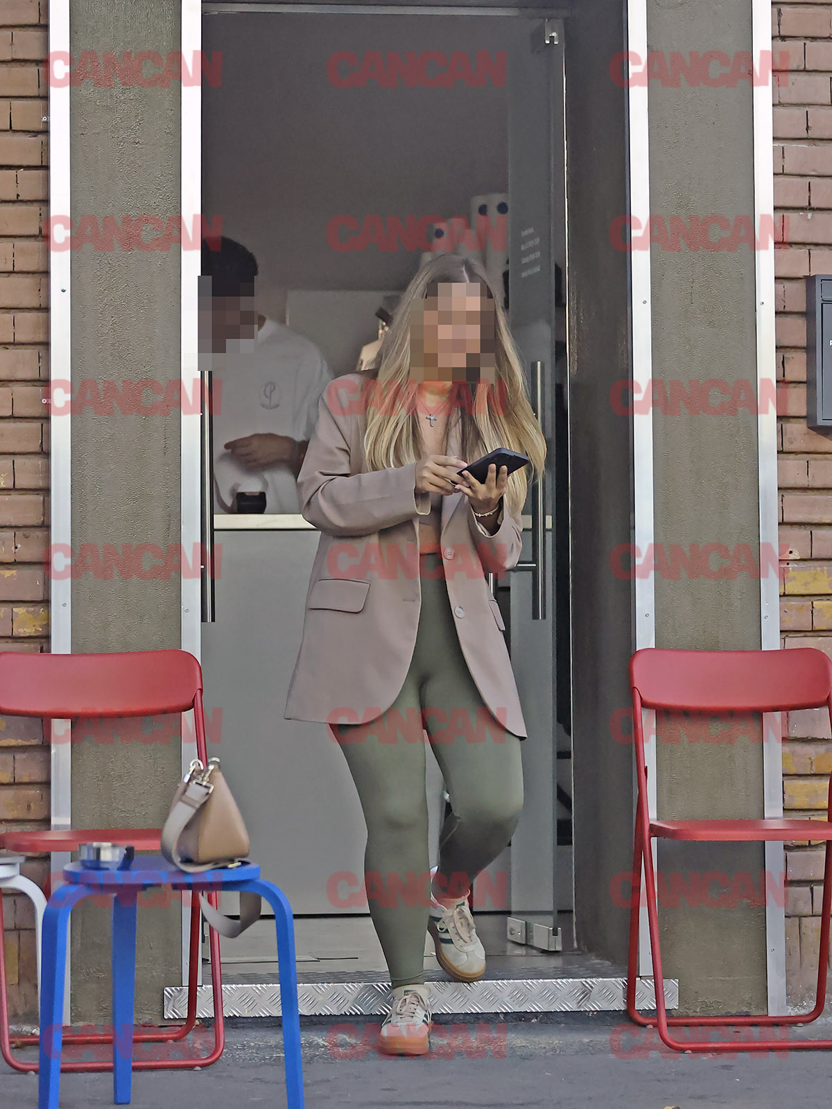 Blondina misterioasă, îmbrăcată într-o ținută mulată