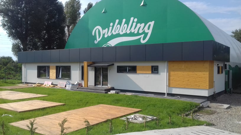Sala de fotbal se află chiar lângă parcul Gherăiești