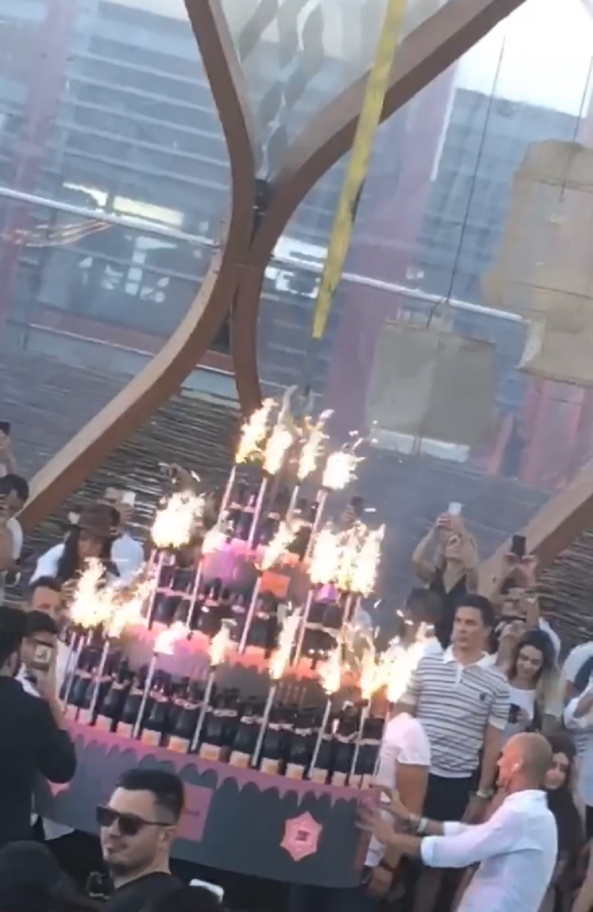 Mega-aroganța pe care au făcut-o ”Regii distracțiilor”. Au comandat o piramidă de 200 de șampanii ce a fost adusă cu o macara la masă