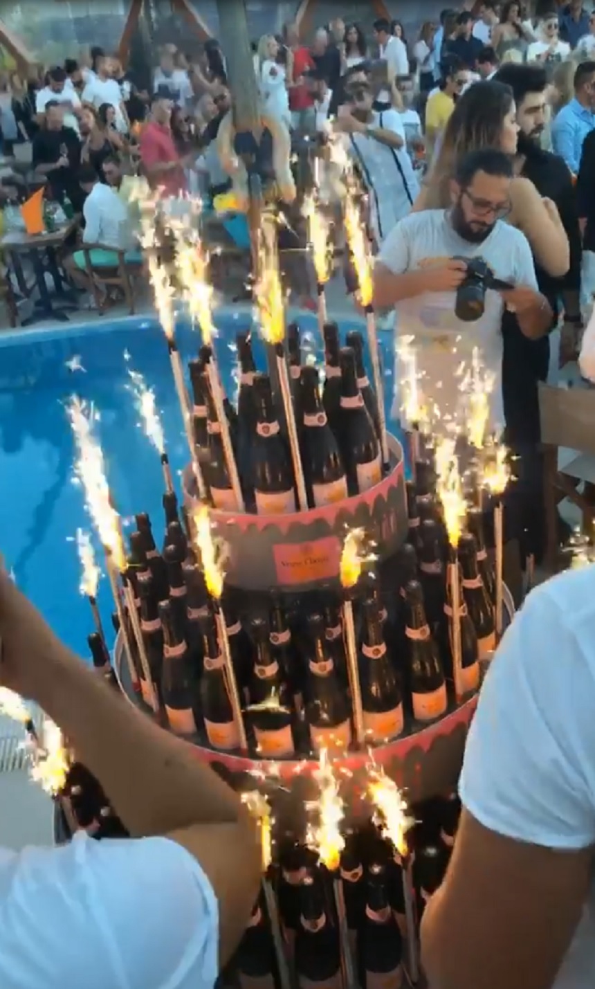 Mega-aroganța pe care au făcut-o ”Regii distracțiilor”. Au comandat o piramidă de 200 de șampanii ce a fost adusă cu o macara la masă