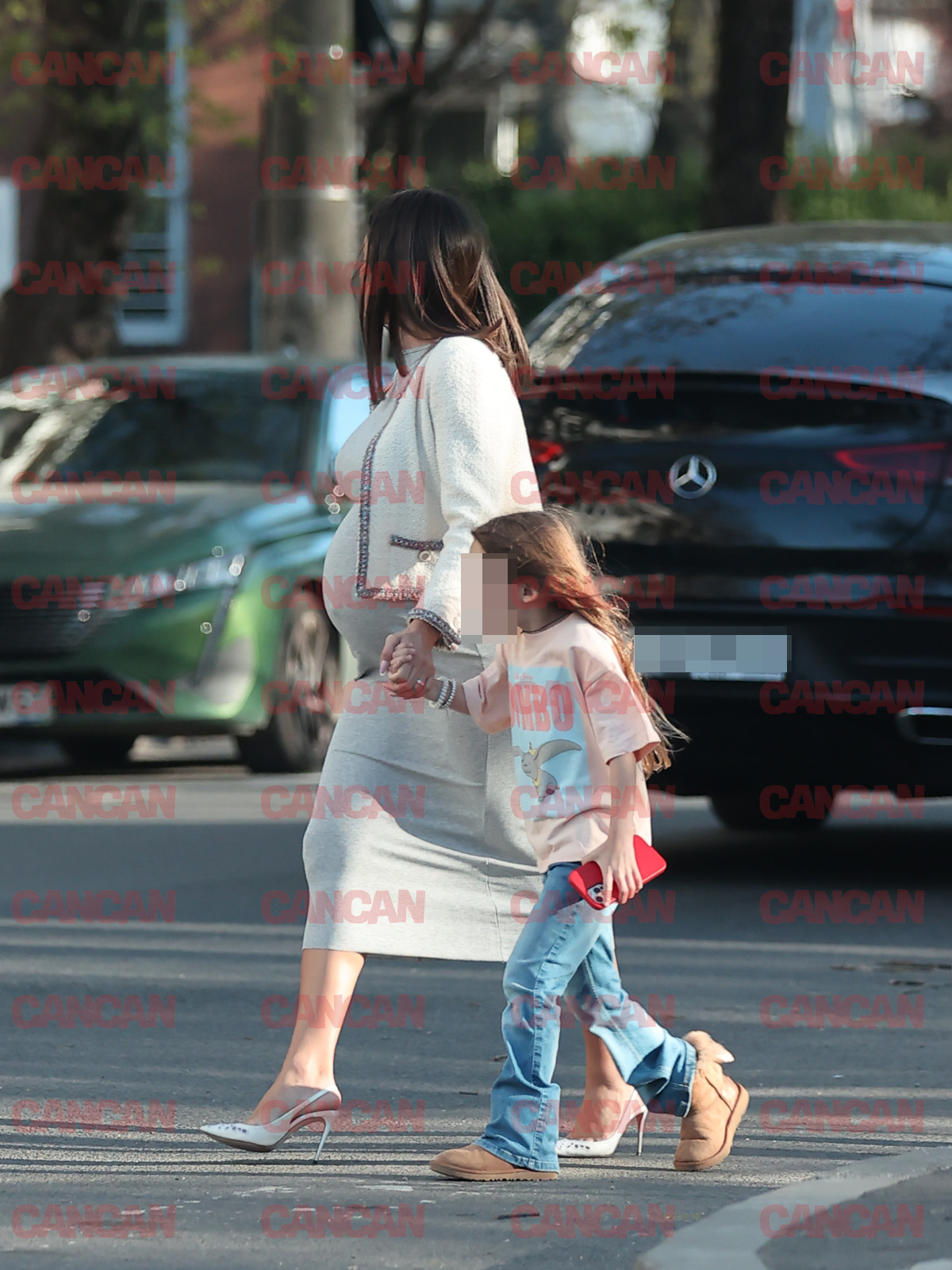 Soția bogătașului din construcții a purtat o rochie ce i-a pus în valoare formele și burtica de gravidă (Foto: CANCAN.RO)