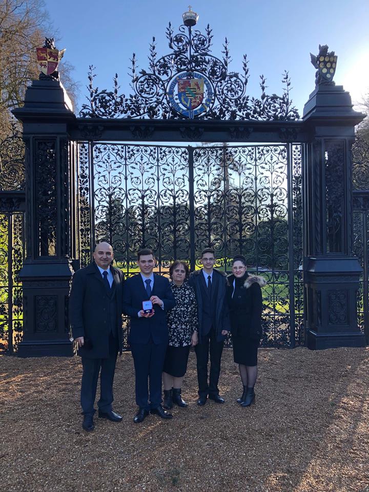 Cornel și apropiații lui, după ce a fost premiat de Regina Angliei