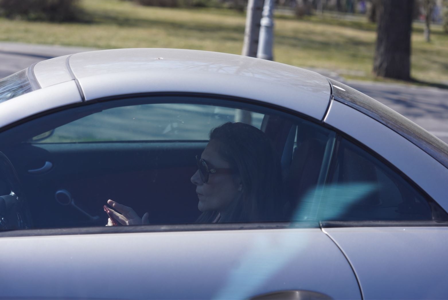 Romanița Iovan, veselă, în mașină (Foto: CANCAN.RO)
