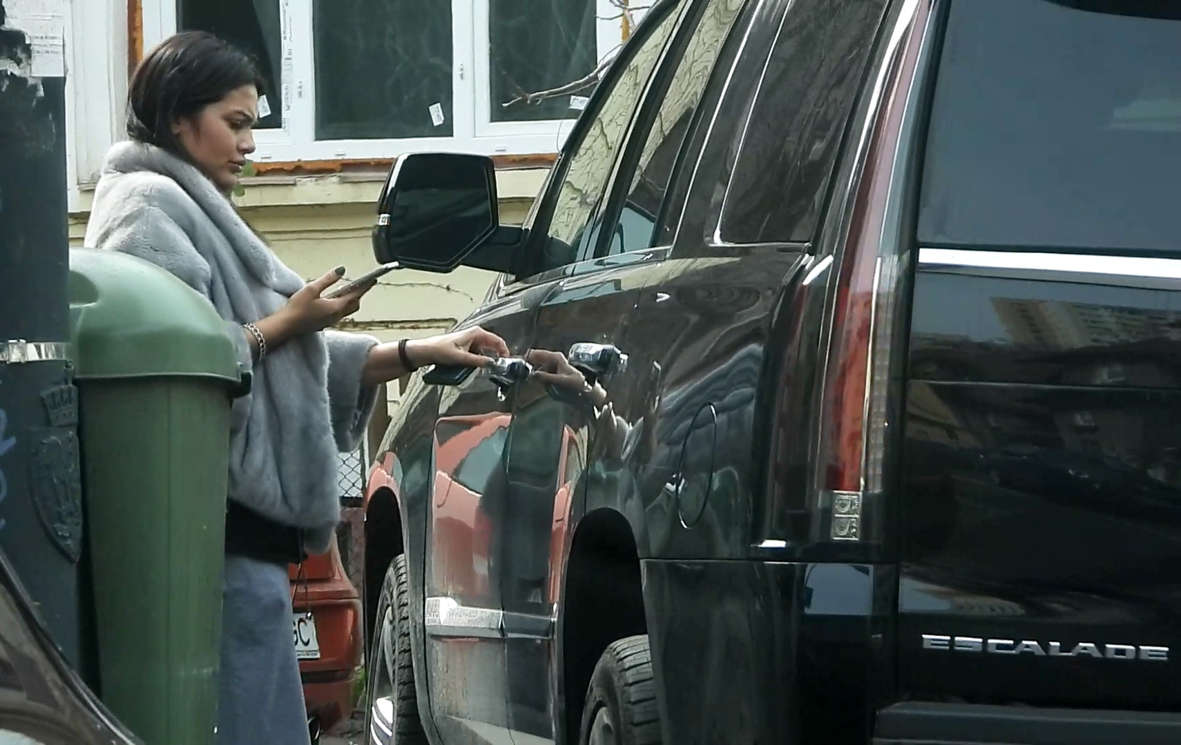 Roxana Dobre coboară din mașină și își verifică mesajele/ Sursă foto: CANCAN.RO