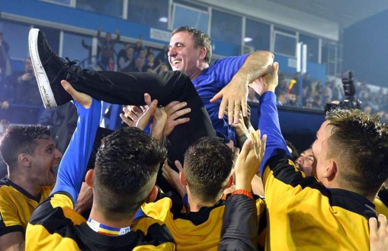 Gică Hagi este purtat pe brațe de jucătorii lui, după ce Viitorul a luat titlul
