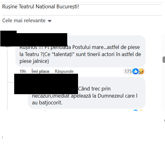 Comentariile la postarea despre piesa de teatru/ Sursa foto: Facebook